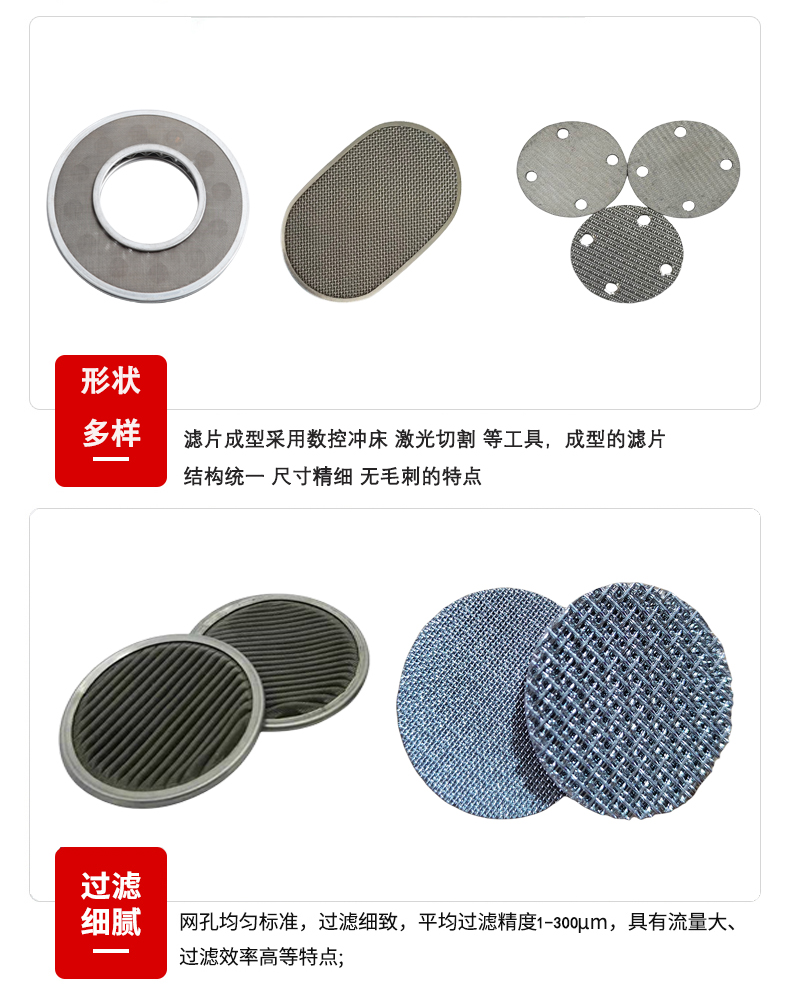 - 不锈钢滤网按编织方法可以分为平纹、斜纹、密纹编织,其中密纹网包括平纹-密纹,斜纹-密纹;以及各种轧花编织方式。不锈钢滤网所用丝的丝经:0.018mm-1.0mm-6mm不锈钢滤网的宽度:1.02米-6.02米(可以按要求切割成条状,宽度5cm-10cm-20cm...100cm)过滤精度:1μm-3μm-5μm-8μm-10μm-12μm...100μm...4.0mm...20.5mm产品特性:网孔精确,生产重现性好、耐磨、强度高,使用寿命长,结构统一、不卷曲,易使用、筛网厚度均匀、抗静电、抗酸碱、耐腐蚀产品具耐酸、耐碱、耐温、耐磨等性能。耐高温不锈钢滤网可达1600℃,我们可以按照客户的要求订做某些特殊规格样式。不锈钢滤网用途:主要用于石油化工、丝网印刷、食品医药、造纸纤维、矿业洗煤、机械制造、电业建筑、气液过滤、污水处理,专业屏蔽、隔音筛选、防风抑尘等行业。