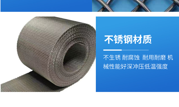 不锈钢编织网材质:SUS201、SUS202、SUS302、SUS304、SUS316、 SUS304L、SUS316L、SUS310、SUS310s、SUS430铜丝等多种不锈钢牌号。